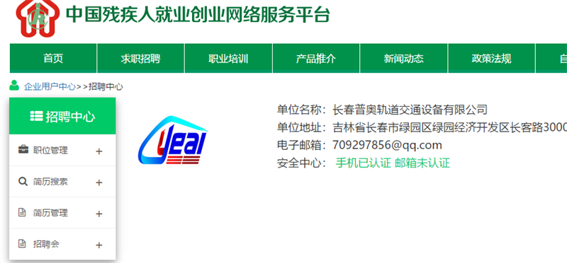 公司被长春市残联推荐为中国残疾人注册企业